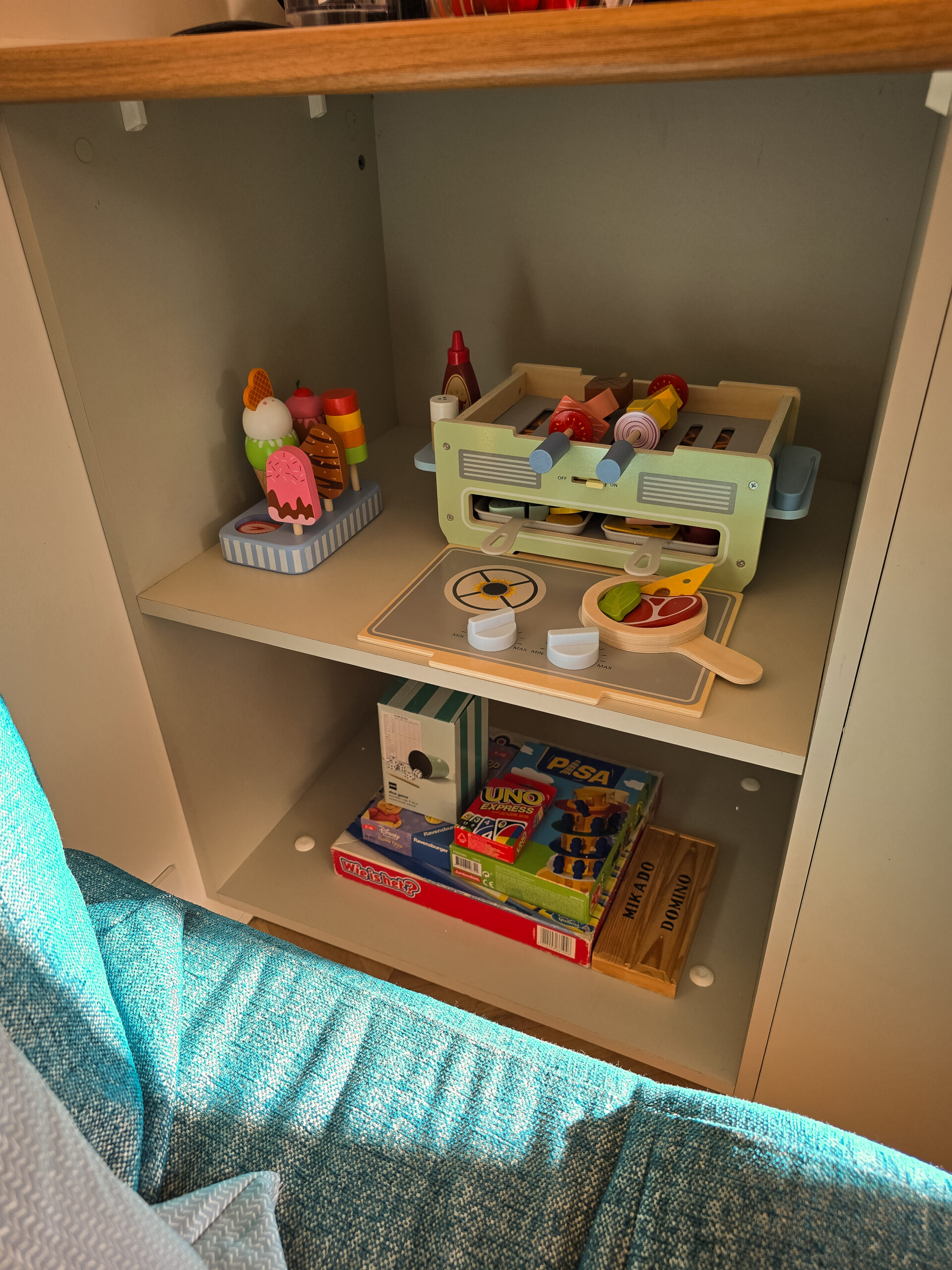 - In het chalet ligt een klein assortiment aan speelgoed en spellen.
